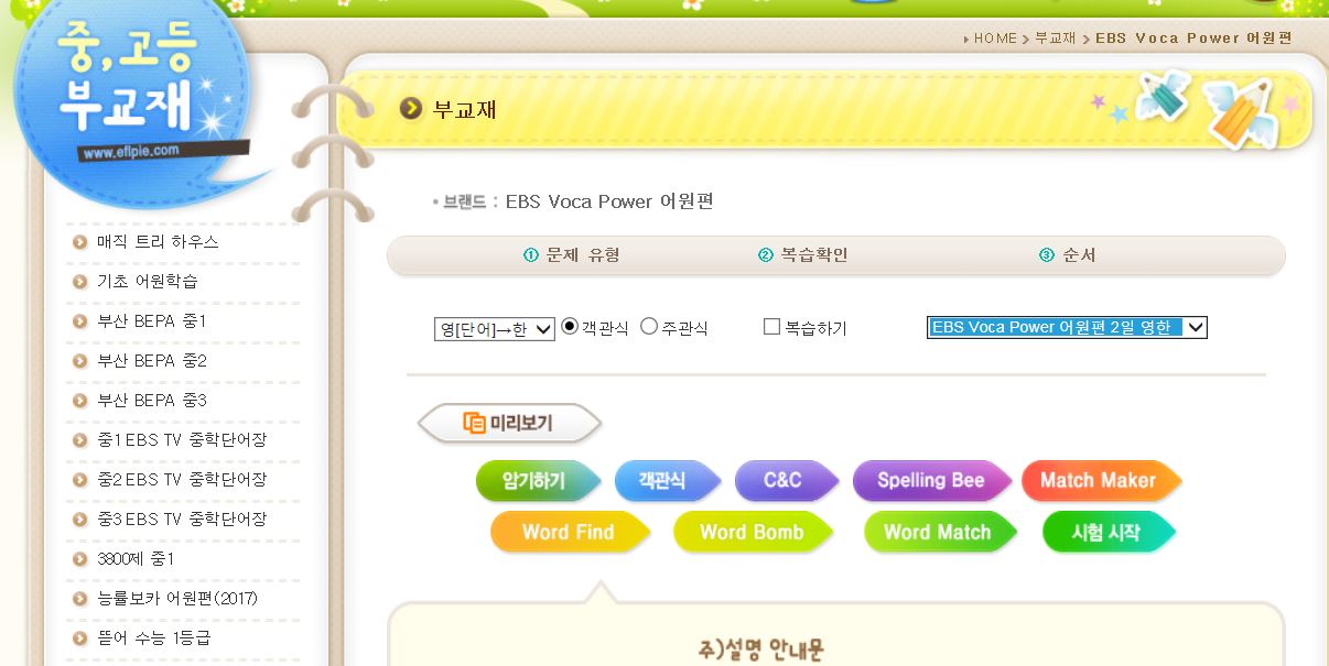 모바일버전으로도 EBS 보카파워 어원편 학습이 가능합니다.
