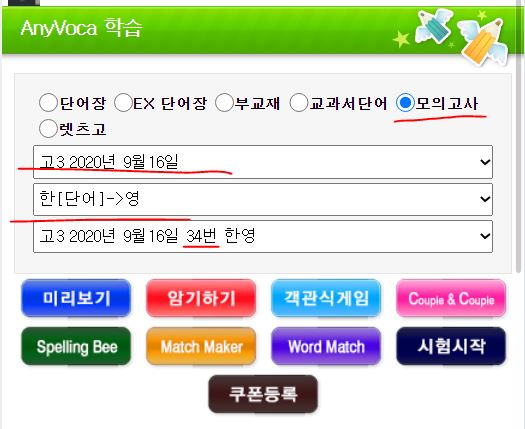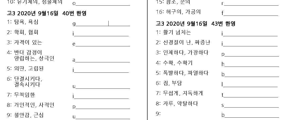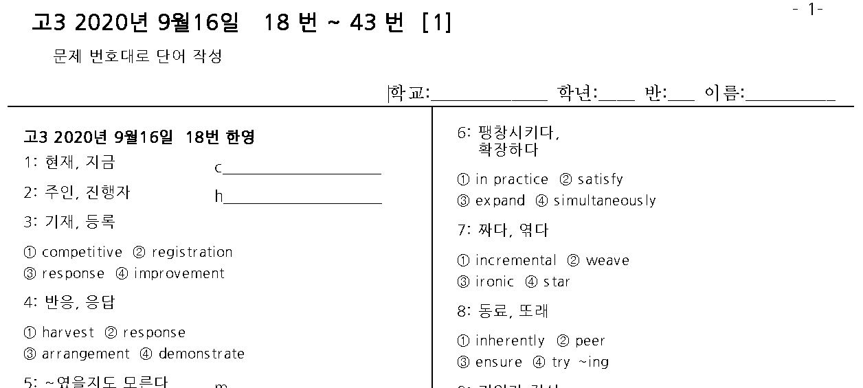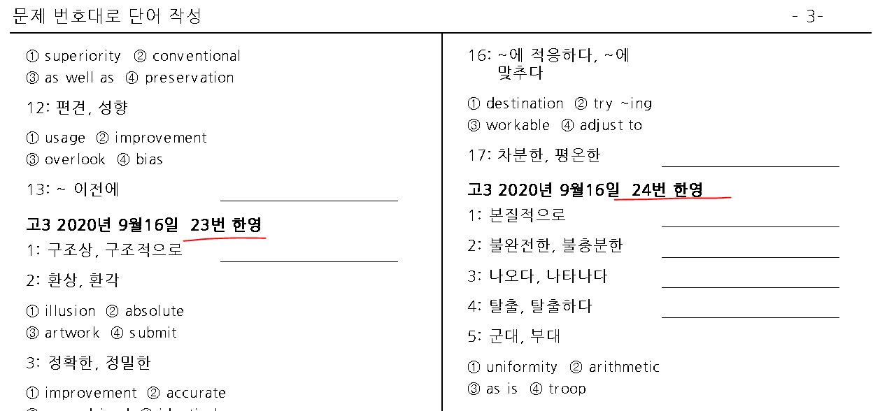 고3 2020년 9월16일 평가원 영어 모의고사 단어 시험지 받아가세요.