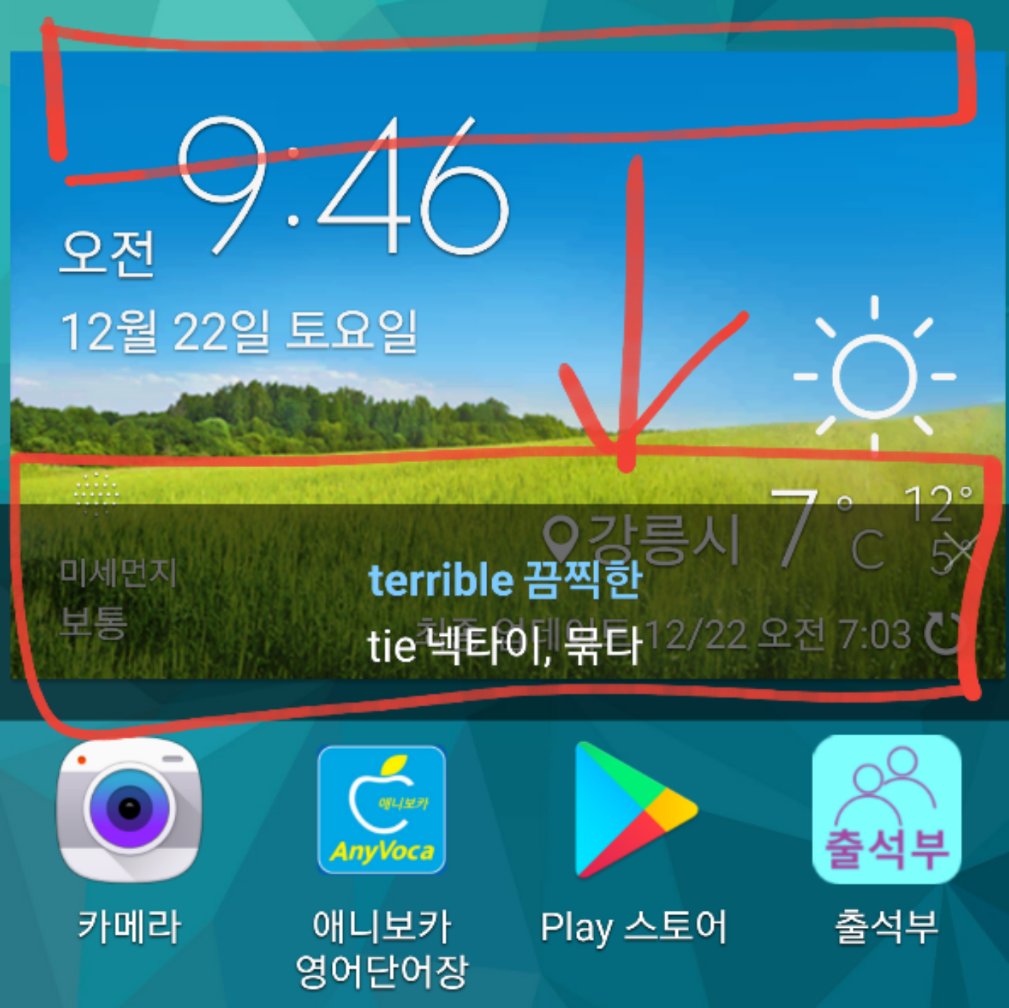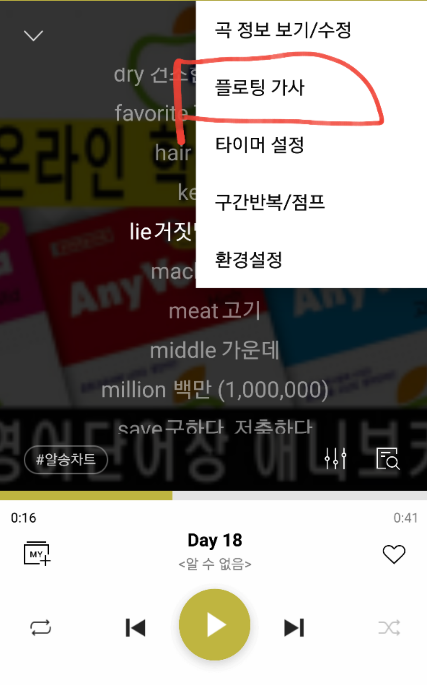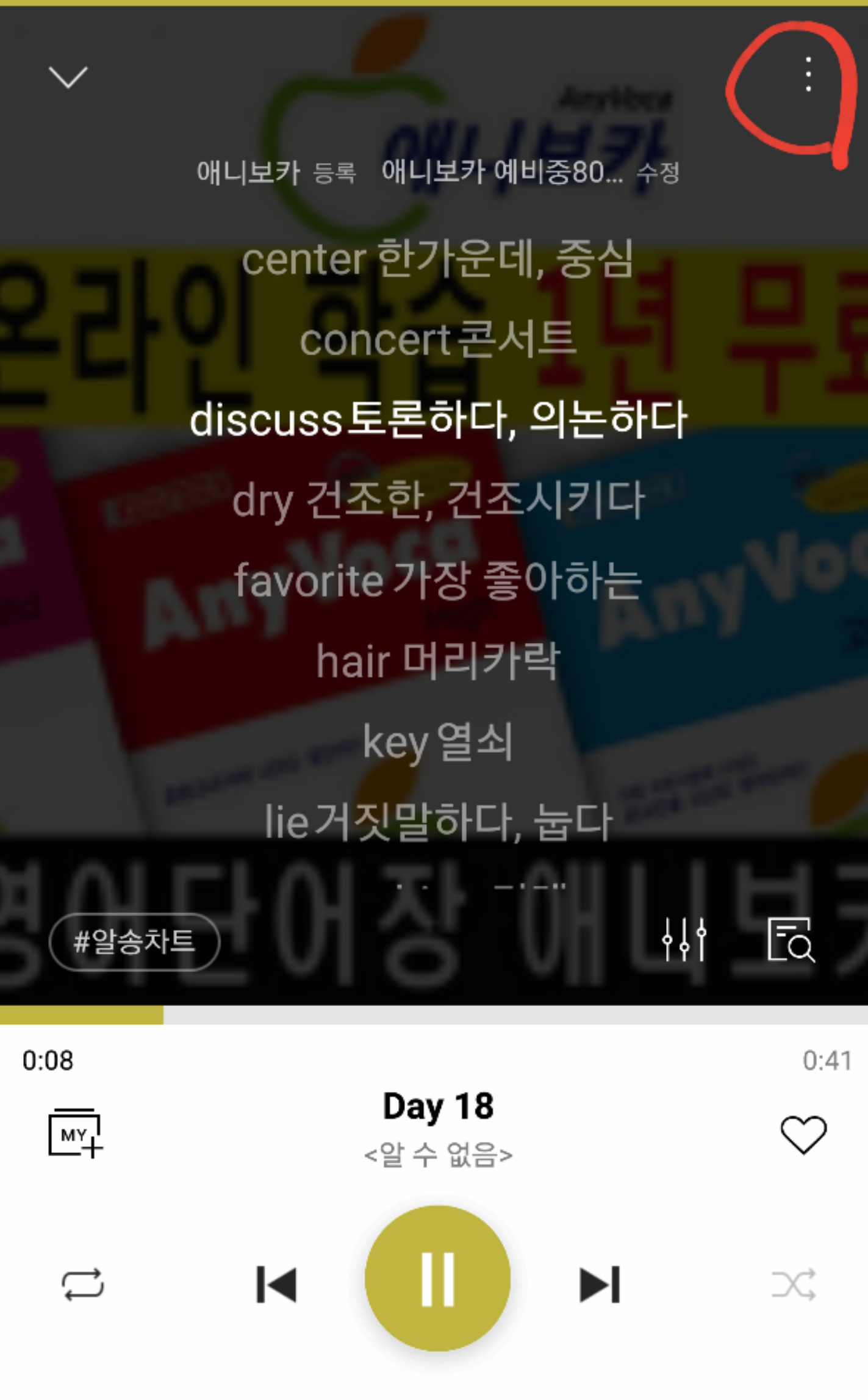 핸드폰 화면에서 글씨를 보면서 영어단어 학습이 가능합니다.