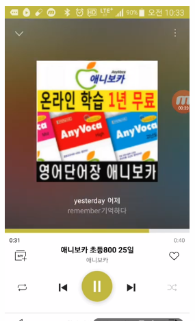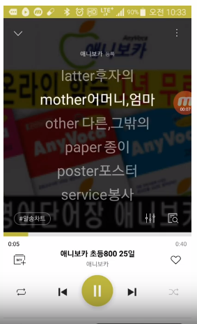 2명의 원어민이 녹음한 mp3파일을 알송앱으로 씽크처리하여 스마트폰 화면을 통해