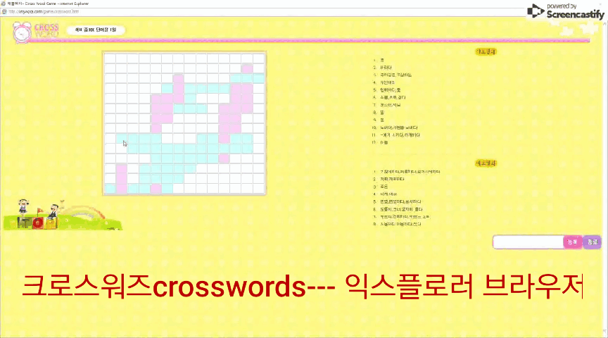 각 블럭 혹은 세로, 가로 열쇠 클릭시 영어단어 발음이 나옵니다.