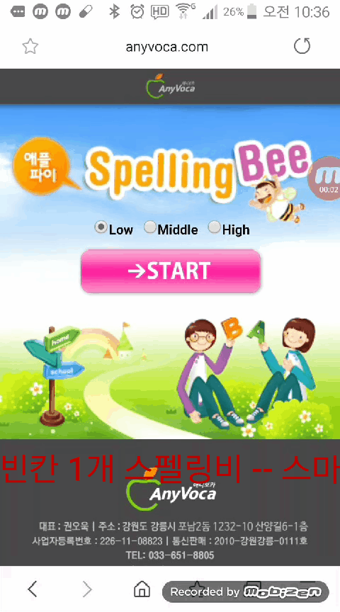 모바일 버전에서는 맞추면 영어단어 발음이 나옵니다.