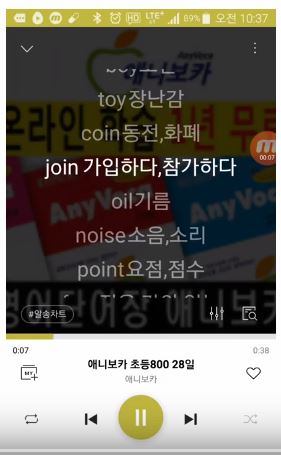 스마트폰 화면에 영어단어와 원어민 음성을 와이파이.데이타 사용없이 반복 청취 가능