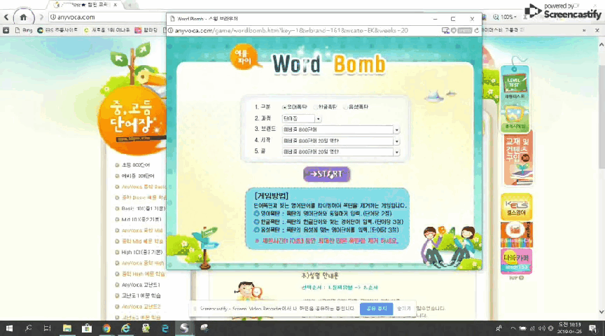산성비 스타일 영어단어 게임. 발음과 함께 폭발음을 들으면서 영어단어 학습