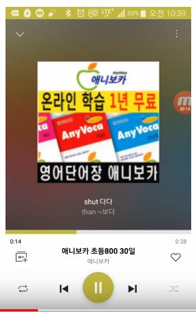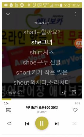 플레이 버튼을 눌러보면 알송앱에서 실제 원어민 음성과 영어단어 확인이 가능합니다.