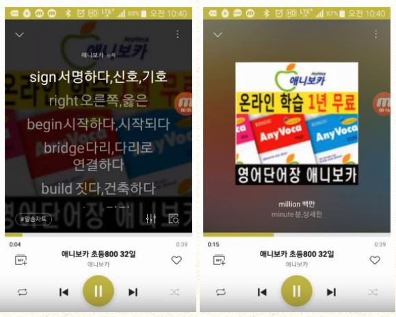 스마트폰 재생시 영어단어를 보면서 언제 어디서나 와이파이. 데이타 사용없이