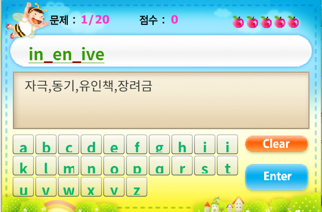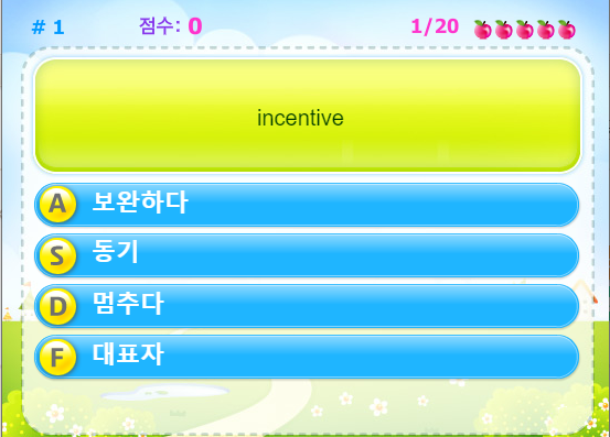 우리가 평소 보는 지루한 시험과는 달리 화려한 효과가 사용자로 하여금 즐겁고 효율적으로 단어를 습득할 수 있도록 도와줍니다.