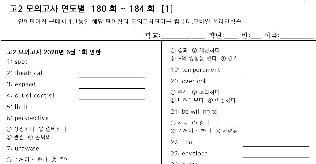 - 영어단어 시험지 다운로드