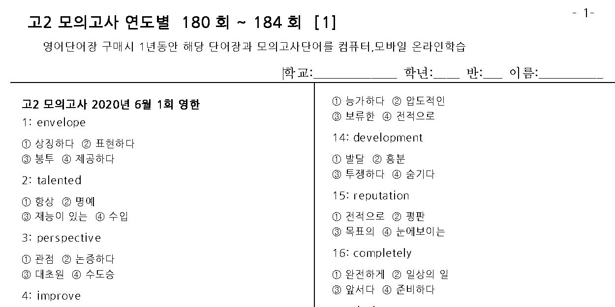 6월 고2 모의고사 영어. 단어시험지 받아가세요.