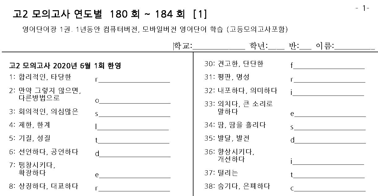 - 영어단어 시험지