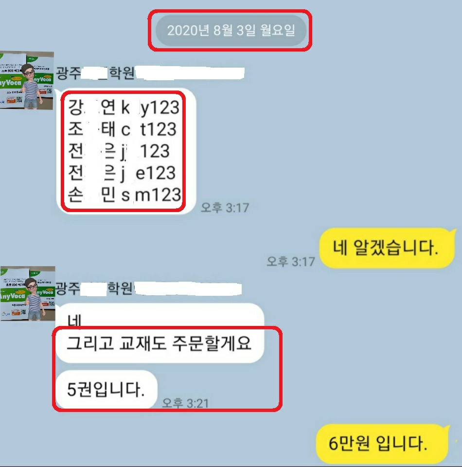 영어학원에서 회원가입 귀찮거나 잘 모르시면 이렇게 부탁하셔도 가입을 대행해서 학원생 영어단어 학습이 가능합니다.
