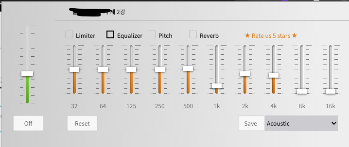 제가 듣고 있는 강의에서 환풍기 소리인지 잡음이 꽤 심한데, 위 사진과 같이 확장프로그램에서 주파수 1k에 해당하는 소리만 낮춰주니 잡음이 확연히 줄어들어서 강의에만 집중할 수 있게 되었습니다.